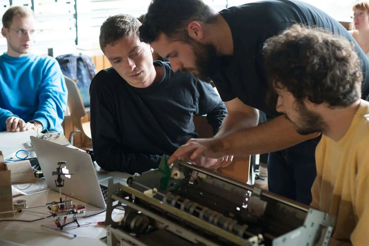 A course format integrating technology into the design process. Eleven first-year students created drawing machines by deconstructing and reprogramming old office equipment, generating new machine typologies through a free creative process. The project won the competitionline campus competition in the faculty projects category.